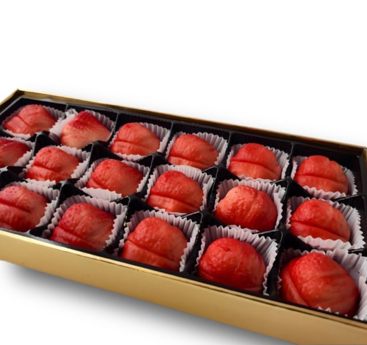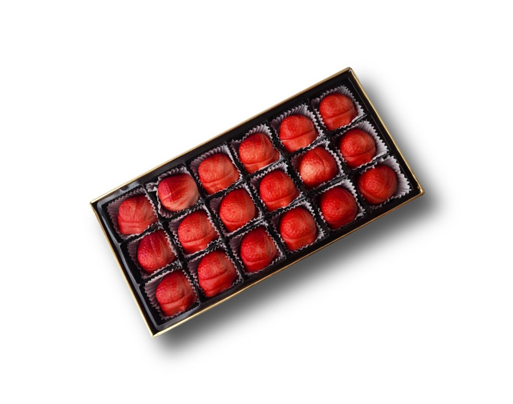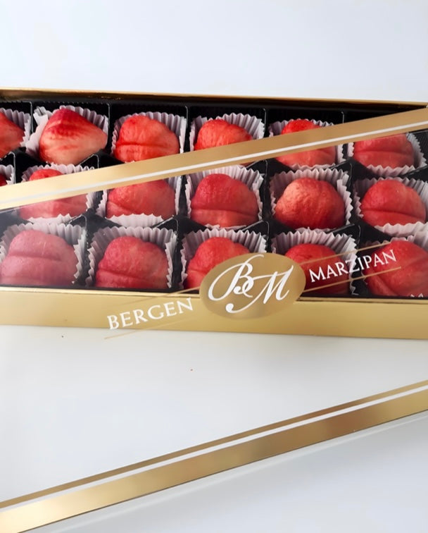 Bergen Marzipan's strawberry-shaped marzipan figures are small, tender, delicate, and toothsome delicacies with the perfect balance of pleasantly sweet and delicately nutty flavors. Characterized by their adorable strawberry shape, clay-like consistency, and smooth texture, these soft and chewy indulgences are bound to become an essential part of your pantry.